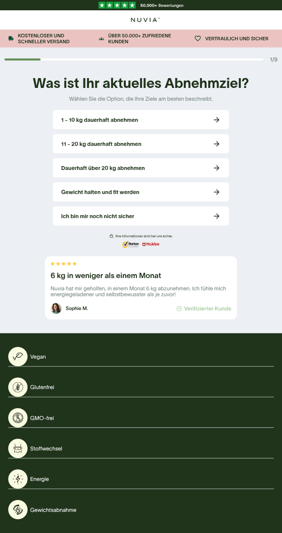 Unser Kundensupport ist über die offizielle Website erreichbar und hilft Ihnen gerne bei allen Anliegen rund um Ihre Nuvia Bestellung weiter.